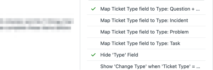 Using the above features of Field Rules, you can map ticket fields. The key to this is the ability to set ticket field values. You can even set field values of fields that you have hidden. So if you wanted to create your own Ticket Type field, you can hide the built-in field and still map some values in your new ticket type field so that if you want to retain for example the "Incident" value, you can set it on the hidden field, meaning the "Problem ID" field still appears as per Zendesk's built-in behavior.