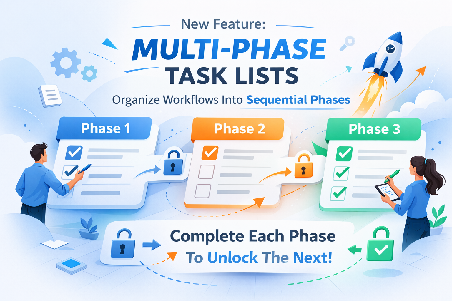 Bring structured workflow management to complex processes by organising tasks into sequential phases, making multi-step workflows like onboarding, compliance training, and product launches easier to manage and complete.